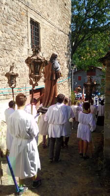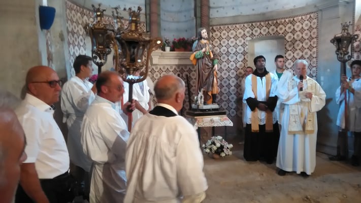 Con una suggestiva cerimonia è stata trasportata qui, oggi, la statua di San Rocco dalla chiesa parrocchiale che l'ospitava dagli